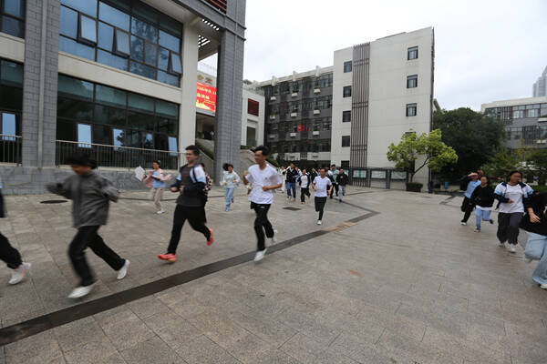 上午9时35分,距离演练正式开始还有5分钟,各班班主任已提前抵达班级,再次向学生强调疏散路线、动作要领和安全注意事项,9时40分,随着急促的防空警报响起,演练正式开始。各班学生在班主任和任课教师的沉着指挥下,迅速起身,按照预定疏散路线快速有序地向学校运动场集结。整个疏散过程仅用时3分35秒,充分展现了师生高效的应急反应能力。随后,各年级部主任,逐一清点班级人数,并第一时间向演练总指挥汇报疏散情况。