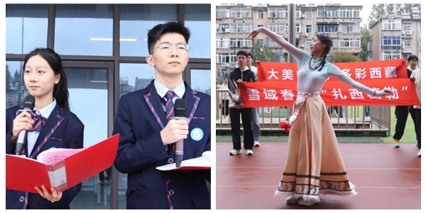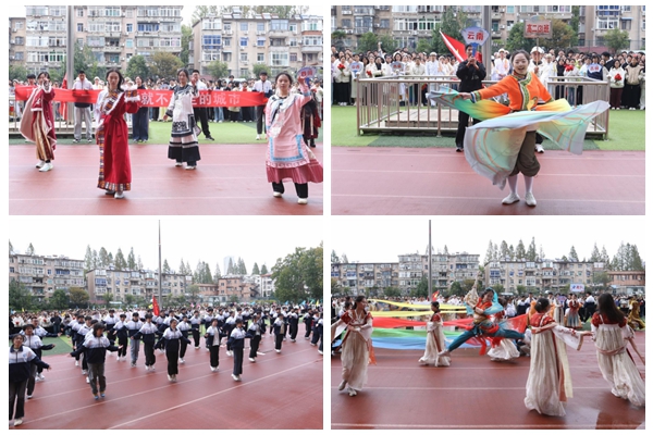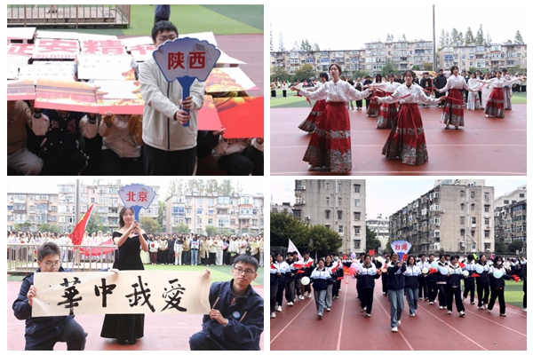 伴随着两位主持人嘹亮而富有激情的开场,入场式正式拉开帷幕。首先步入会场的是庄严的国旗方队、朝气蓬勃的鲜花队与迎风招展的彩旗队。紧随其后的,是各班级代表队带来的视觉与文化的盛宴。本届运动会入场式别出心裁,“聚青春力量,展华夏风采”为主题,各班方阵分别代表全国34个不同省、自治区、直辖市,进行了精彩纷呈的文化展示:各具特色的民族服饰争奇斗艳,活力四射的民族舞蹈轮番上演,从壮美山河的微缩景观到延安精神的传承彰显,同学们用创意与才华生动演绎了祖国各地的风土人情和灿烂文化,赢得了现场师生的阵阵掌声与喝彩。