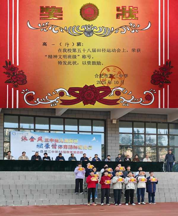 在刚刚落下帷幕的合肥三中第五十八届运动会上,赛场上运动健儿们挥洒汗水、奋勇争先的矫健身影固然令人心潮澎湃,但赛场下,同学们井然有序、友爱互助的文明之风,也成为了本届运动会最亮丽的风景线。经过大会组委会的认真评选,高一(14)班凭借其严明的组织纪律、积极的参与热情和崇高的道德风尚,荣获了本届运动会“精神文明班级”荣誉称号。