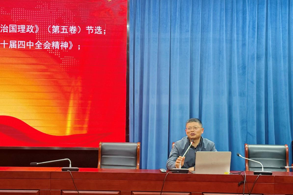 随后,支部书记郑书建以《深入学习贯彻党的二十届四中全会精神》为题讲授专题党课。郑书建从“十四五”时期我国发展取得的重大成就、“十五五”时期经济社会发展的指导思想与主要目标、“十五五”时期经济社会发展必须遵循的原则、“十五五”时期经济社会发展的重要部署等四个方面展开,对全会公报中的重要内涵作出解读。他强调,教育作为国之大计、党之大计,是推动高质量发展的重要支撑,全体党员教师要把思想和行动统一到全会精神上来,立足教学岗位,聚焦学生全面发展,在课程改革、师德师风建设、育人模式创新等方面勇挑重担,以高质量教育服务“十五五”高质量发展大局。党课内容兼具理论高度与实践深度,为支部后续工作开展指明了方向。