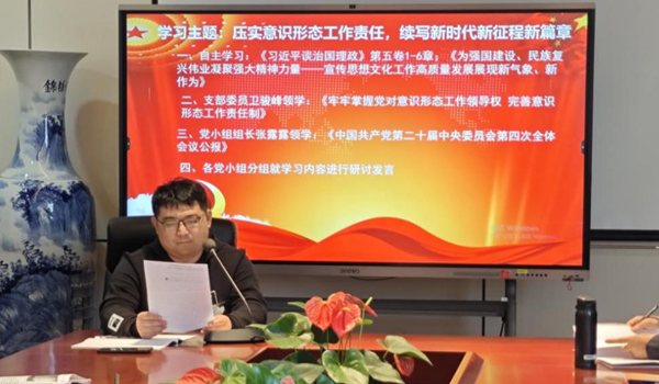 在集中领学环节,支部委员卫骏峰以《牢牢掌握党对意识形态工作领导权 完善意识形态工作责任制》为核心内容,结合党的二十大以来意识形态工作的重大部署与实践成果,全面阐释了意识形态工作的深刻内涵。