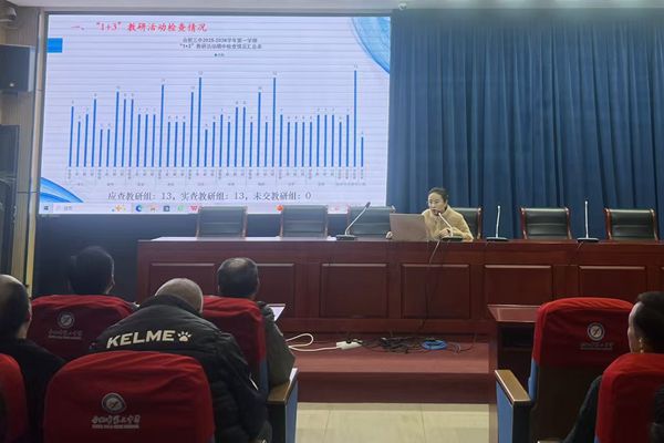 教务处主任王文忠从教学常规管理、课堂教学评价等方面展开汇报,重点分析了期中教学检查结果,针对课堂效率提升、作业设计优化等问题提出改进建议。