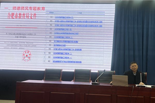 会上,沈龙海结合合肥教育和三中实际,带领全体教职工深入学习二十届届四中全会精神,强调要将全会精神与教育教学实践相结合,深入落实立德树人根本任务,推进学校多样化有特色发展,努力办好人民满意的教育,助力教育强国建设。沈龙海带领大家重温了《新时代中小学教师职业行为十项准则》等重要文件,要求全体教师严格落实师德师风要求,大力弘扬教育家精神,守牢校园安全底线,做好校园防欺凌专项整治,积极关注学生身心健康,聚焦学生全面发展。最后,他号召大家要以“时不我待”的紧迫感和“舍我其谁”的担当精神,营造风清气正的校园氛围,共同书写高质量发展新篇章。
