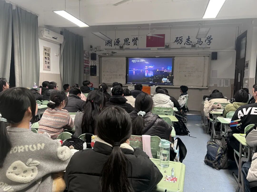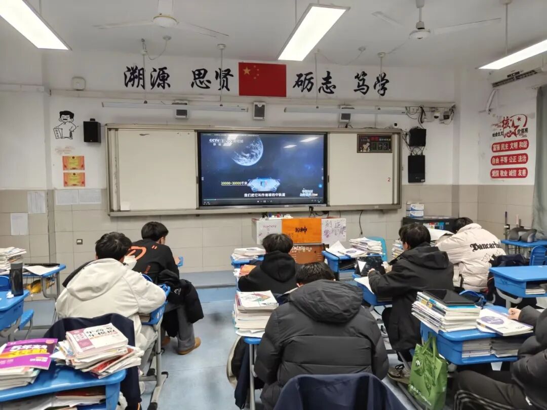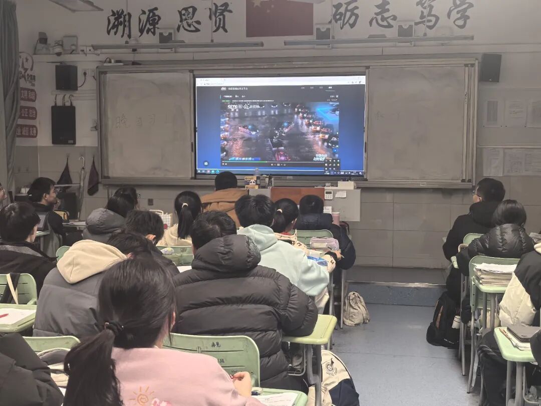 活动期间,校园宣传栏展示科技成果与活动安排,电子屏滚动播放主题标语,电子班牌每日播报“科晚科技小知识”,全方位营造科普氛围。1 月 12 日晚自习,全校学生分场地集中观看科晚录播视频,学科教师现场答疑引导记录心得。此外,高一年级开展科技手抄报、科幻创意设计,高二年级聚焦新型环保材料开展降解实验,高三学生结合高考考点开展 “科技成果与学科知识关联” 专题探究。