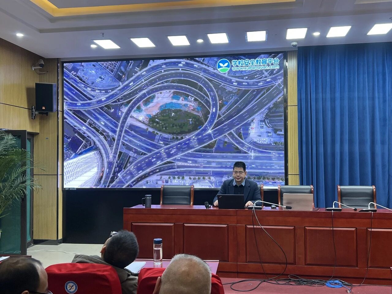 会议伊始,副校长张黎明作安全教育专题培训。他结合安全教育警示片,通过讲解安全法律法规和剖析现实案例,进一步强化了全体教职工的安全意识。随后,张黎明围绕平安校园建设、食堂监管、后勤保障、财务及固定资产管理等作了总结介绍。
