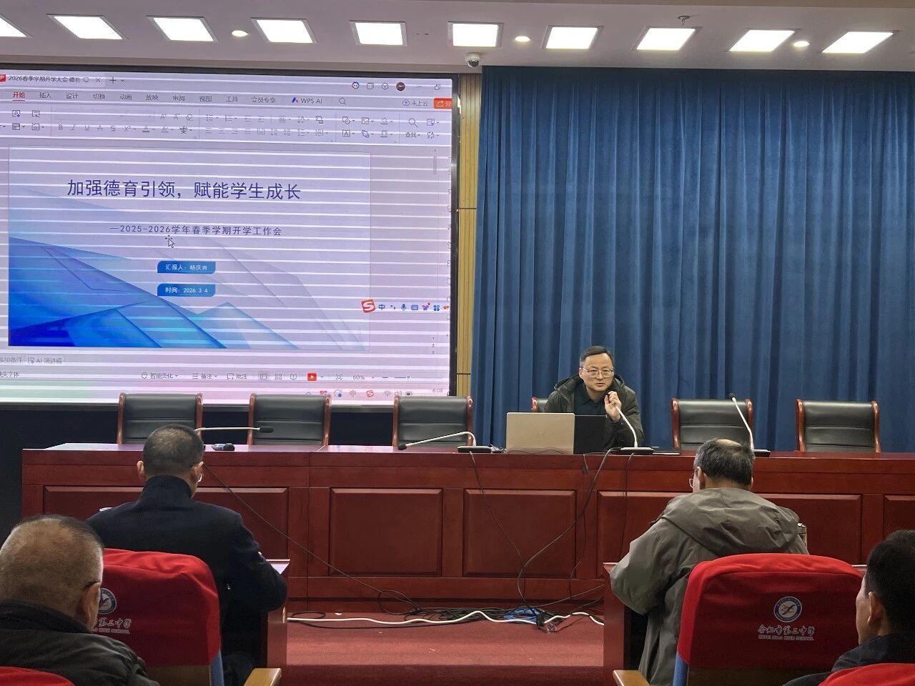 随后,各分管校长依次部署开学重点工作。副校长杨庆吉以“加强德育引领,赋能学生成长”为主题,对德育工作作出系统安排,聚焦学生发展、队伍建设、家校共育三大核心,要求全体教师坚持立德树人,协力推动德育工作走深走实。