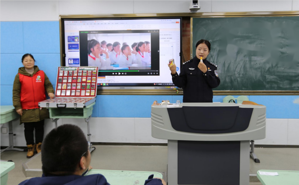合肥三中法治副校长逍遥津派出所章培警官给同学们上了一堂生动的法治安全专题课。她通过警示教育视频,剖析真实案例,深入浅出地讲解了校园欺凌的法律后果与应对策略、交通出行中的盲区风险以及网络交友、防范电信诈骗的注意事项。针对毒品安全,她现场展示了各类新型毒品的仿真模型,详细拆解了“跳跳糖”“奶茶粉”等极具迷惑性的伪装毒品,告诫同学们务必提高警惕,加强自我保护。