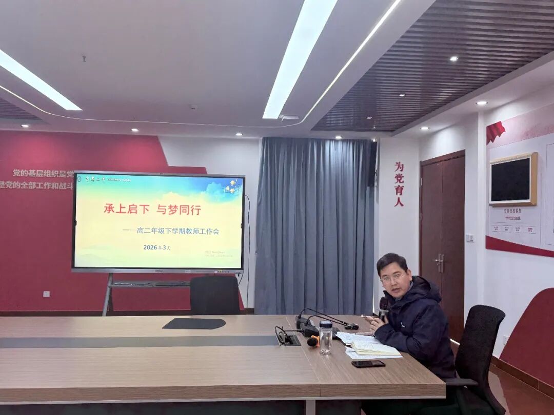 春潮涌动启新程,凝心聚力谋发展。为总结过往得失、明确新学期育人方向,压实教学责任、规范办学行为,2026年3月12日,合肥三中高二年级召开新学期教师会,全体高二教师齐聚一堂,共话教学提质,共绘育人蓝图。会议由高二年级部主任郑书建主持,全程紧扣教学核心、聚焦规范管理,为新学期年级教育教学工作有序开展筑牢根基。
