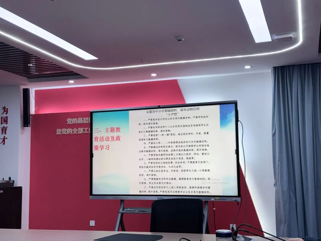 为严格落实办学规范,筑牢师德师风底线,会议专门设置《安徽省中小学教辅材料、课外读物管理“十严禁”》主题教育学习环节。郑书建主任带领全体教师逐条学习“十严禁”要求,强调全体教师要提高思想认识,严守纪律底线,坚决杜绝违规征订教辅材料、强制推荐课外读物等行为,规范自身教学行为,坚守教育初心,切实维护学生和家长的合法权益,营造风清气正的育人环境。