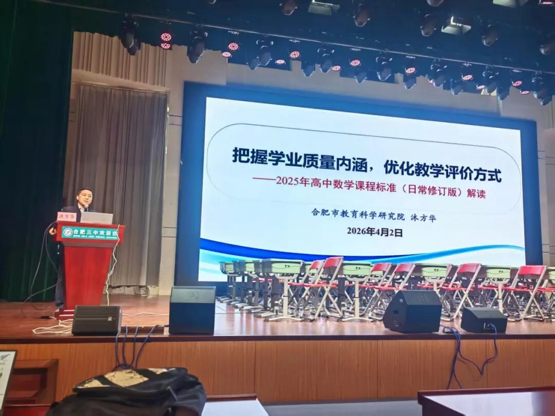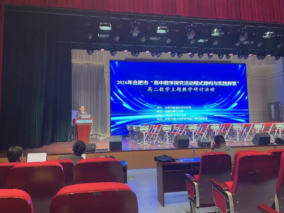 为深化新课标落地实施,优化高中数学课堂教学,提升教师专业素养与命题研究能力,2026年4月2日,合肥市“高中数学探究活动模式构建与实践探索”高二数学主题教学研讨活动在合肥市第三中学成功举办。本次活动由合肥市教育科学研究院主办、合肥市第三中学承办,汇聚全市高二数学教师参会交流,活动涵盖课标解读、课堂展示、课例点评、命题培训四大核心板块,内容扎实丰富,研讨氛围浓厚。